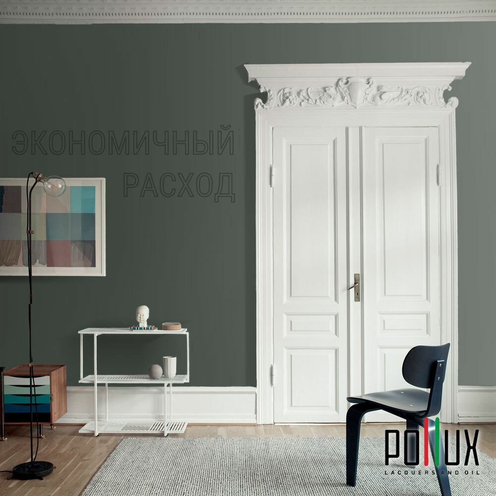 Краска моющаяся интерьерная для стен и потолков, Pollux INTERIOR без запаха, быстросохнущая, акриловая, матовое покрытие, цвет NCS S 5005-G20Y, 1л.