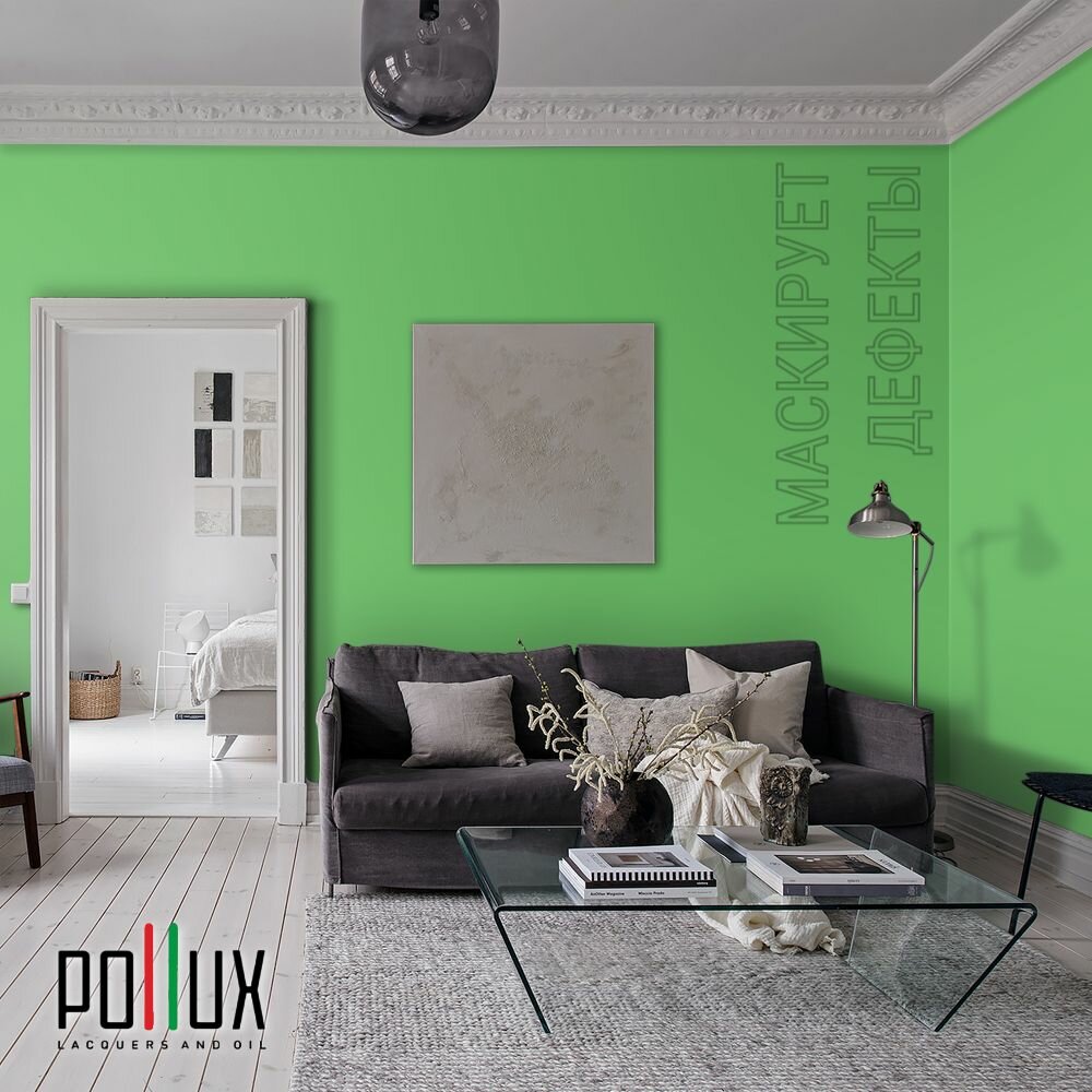 Краска моющаяся интерьерная для стен и потолков, Pollux INTERIOR без запаха, быстросохнущая, акриловая, матовое покрытие, цвет NCS S 1030-G20Y, 1л.