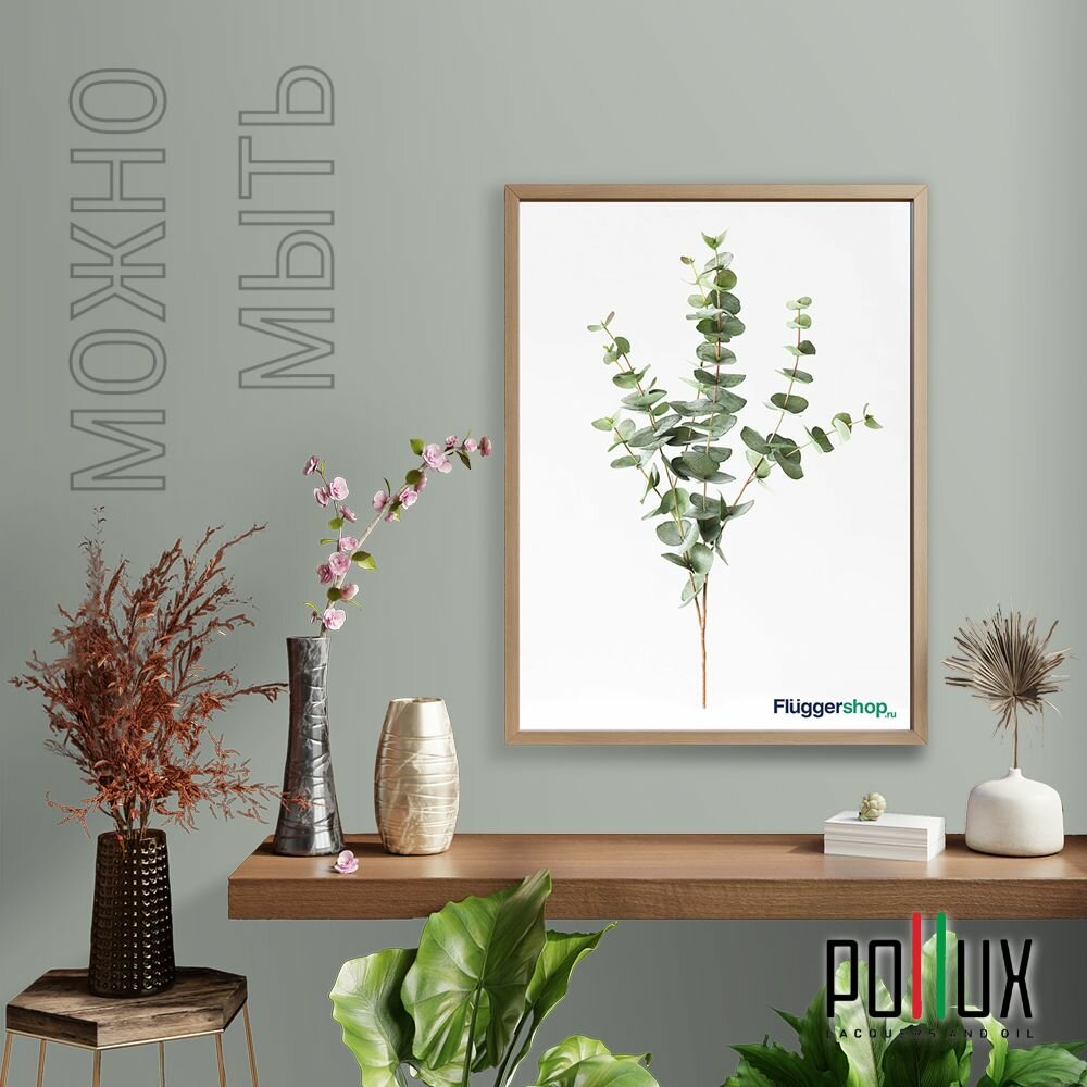 Краска моющаяся интерьерная для стен и потолков, Pollux INTERIOR без запаха, быстросохнущая, акриловая, матовое покрытие, цвет NCS S 4050-G20Y, 1л.