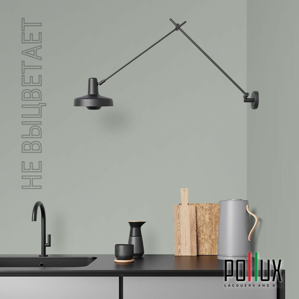 Краска моющаяся интерьерная для стен и потолков, Pollux INTERIOR без запаха, быстросохнущая, акриловая, матовое покрытие, цвет NCS S 7005-G20Y, 1л.