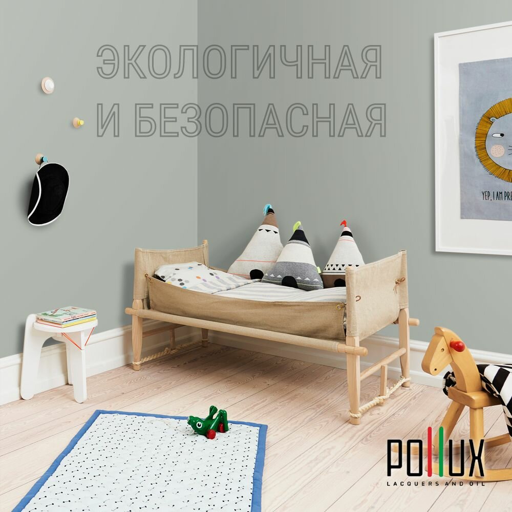 Краска моющаяся интерьерная для стен и потолков, Pollux INTERIOR без запаха, быстросохнущая, акриловая, матовое покрытие, цвет NCS S 3050-G20Y, 1л.