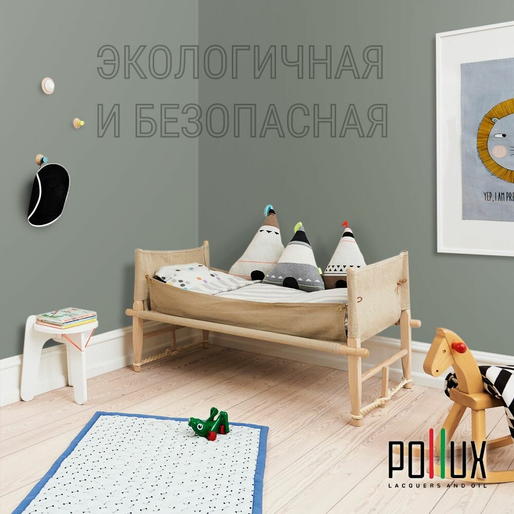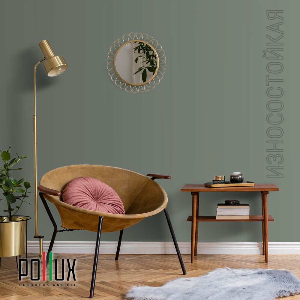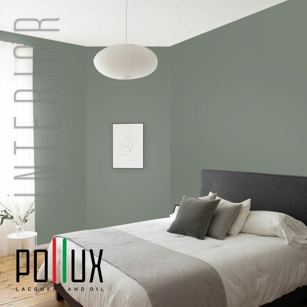 Краска моющаяся интерьерная для стен и потолков, Pollux INTERIOR без запаха, быстросохнущая, акриловая, матовое покрытие, цвет NCS S 4050-G20Y, 1л.