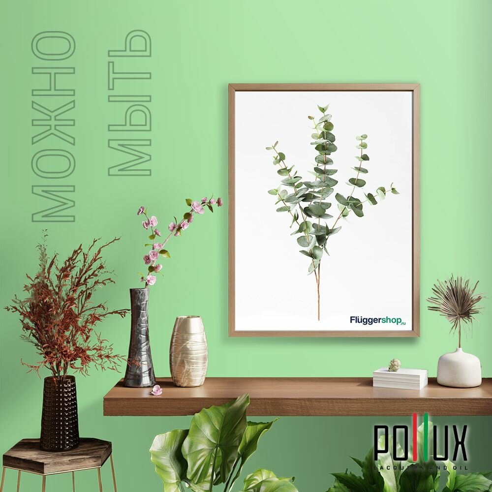 Краска моющаяся интерьерная для стен и потолков, Pollux INTERIOR без запаха, быстросохнущая, акриловая, матовое покрытие, цвет NCS S 5540-G20Y, 1л.