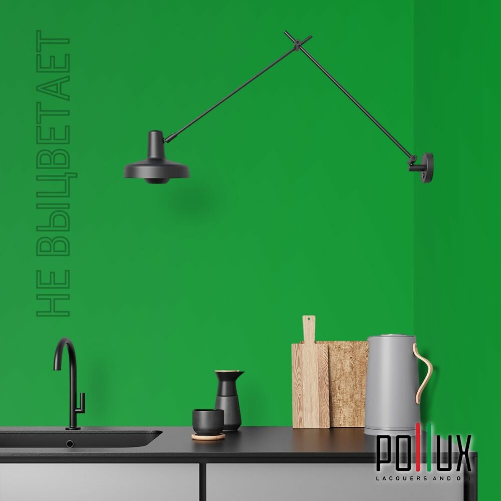 Краска моющаяся интерьерная для стен и потолков, Pollux INTERIOR без запаха, быстросохнущая, акриловая, матовое покрытие, цвет NCS S 1060-G20Y, 1л.