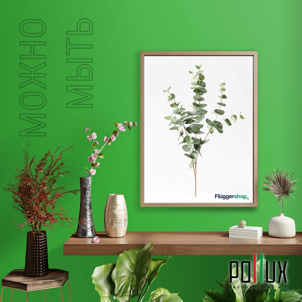 Краска моющаяся интерьерная для стен и потолков, Pollux INTERIOR без запаха, быстросохнущая, акриловая, матовое покрытие, цвет NCS S 1060-G20Y, 1л.