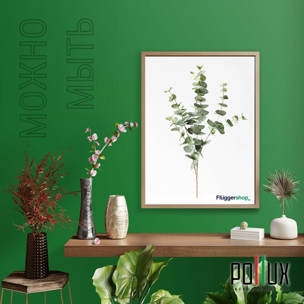 Краска моющаяся интерьерная для стен и потолков, Pollux INTERIOR без запаха, быстросохнущая, акриловая, матовое покрытие, цвет NCS S 6005-G20Y, 1л.
