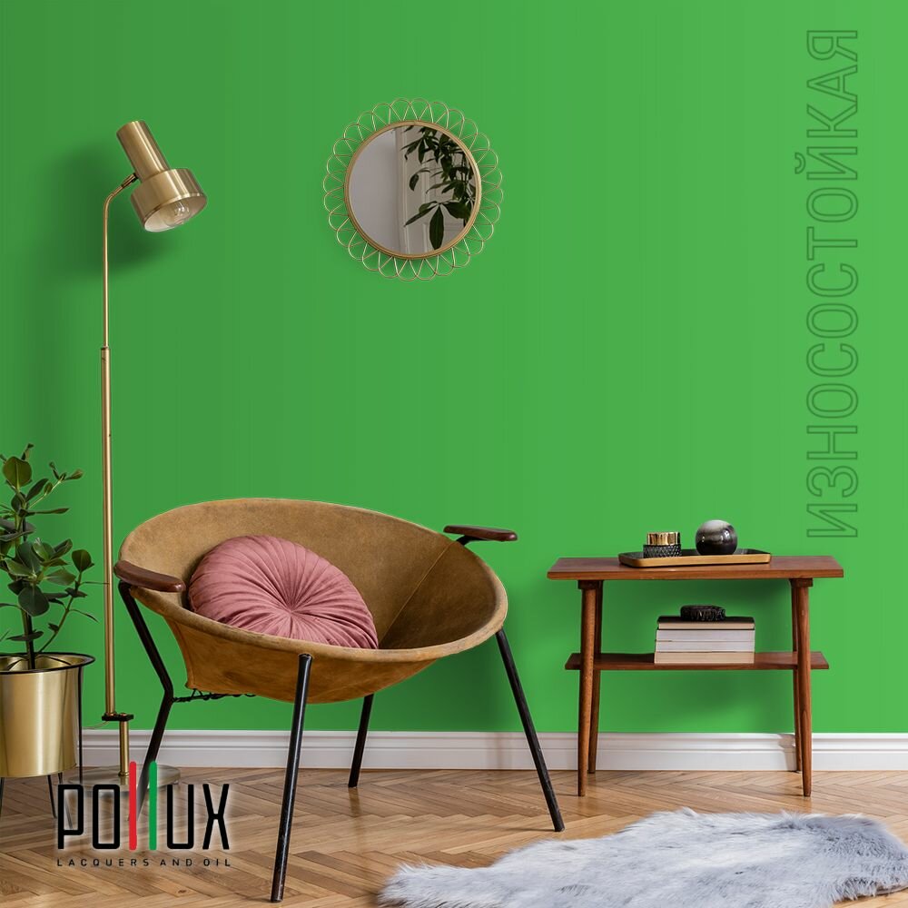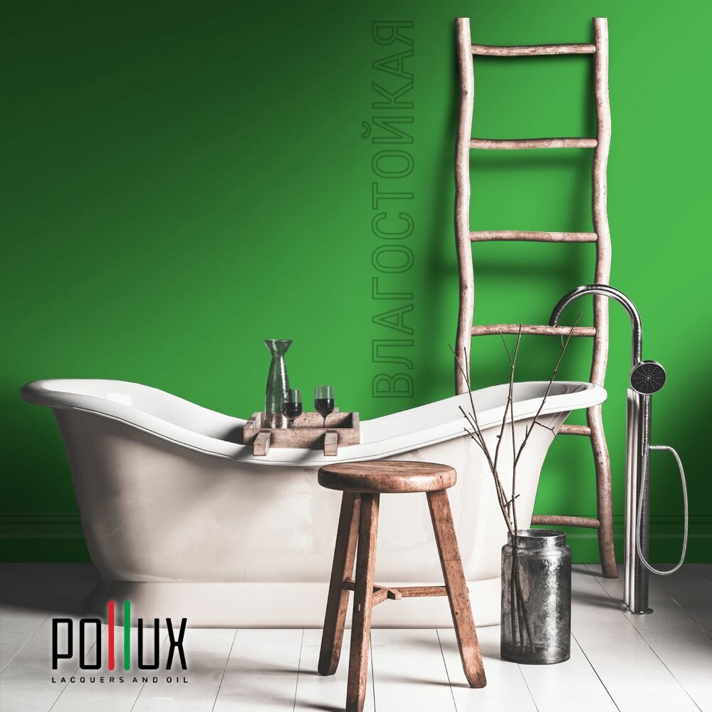 Краска моющаяся интерьерная для стен и потолков, Pollux INTERIOR без запаха, быстросохнущая, акриловая, матовое покрытие, цвет NCS S 1060-G20Y, 1л.