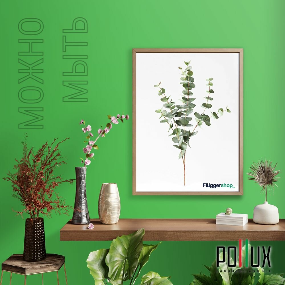 Краска моющаяся интерьерная для стен и потолков, Pollux INTERIOR без запаха, быстросохнущая, акриловая, матовое покрытие, цвет NCS S 4050-G20Y, 1л.