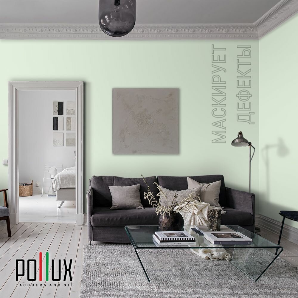 Краска моющаяся интерьерная для стен и потолков, Pollux INTERIOR без запаха, быстросохнущая, акриловая, матовое покрытие, цвет NCS S 0907-G20Y, 1л.