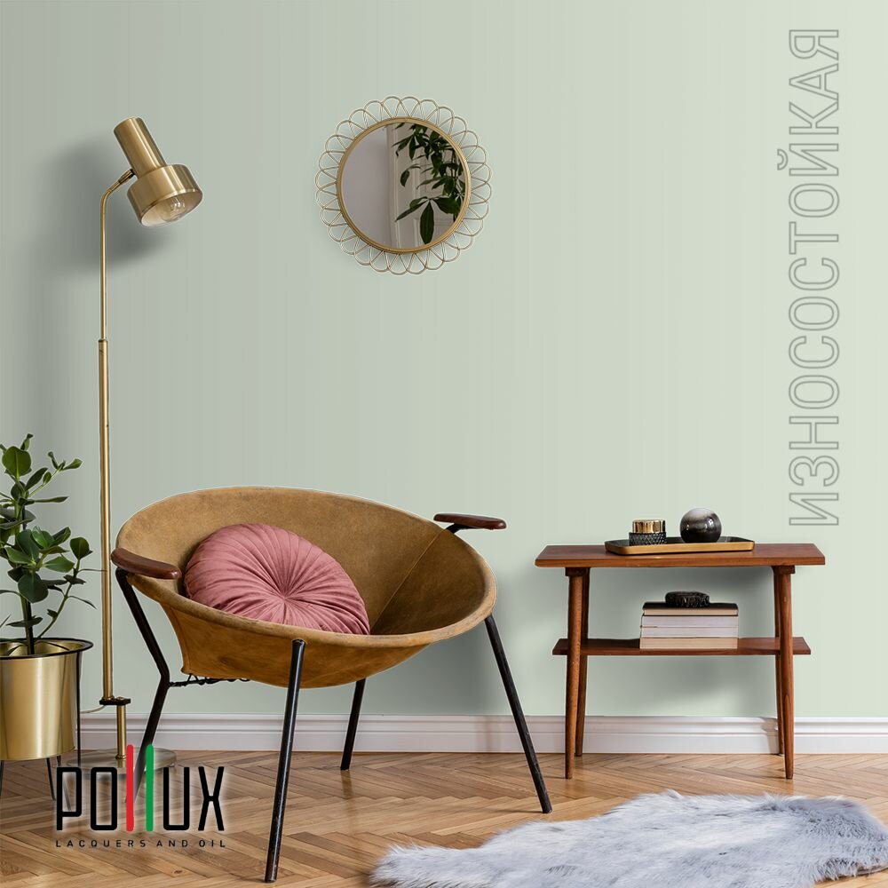 Краска моющаяся интерьерная для стен и потолков, Pollux INTERIOR без запаха, быстросохнущая, акриловая, матовое покрытие, цвет NCS S 5005-G20Y, 1л.