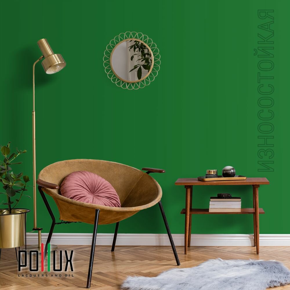 Краска моющаяся интерьерная для стен и потолков, Pollux INTERIOR без запаха, быстросохнущая, акриловая, матовое покрытие, цвет NCS S 8005-G20Y, 5л.