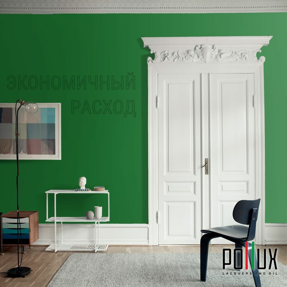 Краска моющаяся интерьерная для стен и потолков, Pollux INTERIOR без запаха, быстросохнущая, акриловая, матовое покрытие, цвет NCS S 1060-G20Y, 1л.
