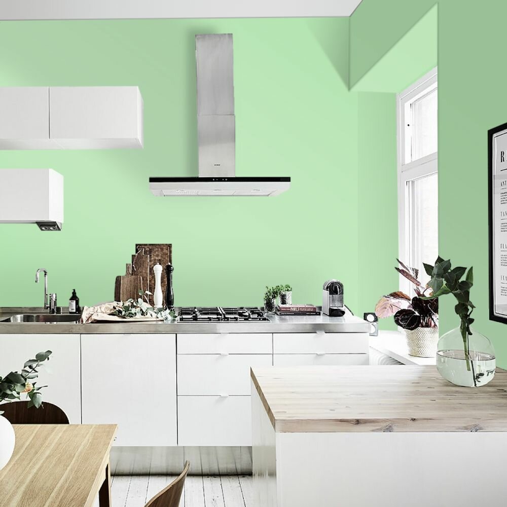 Краска моющаяся интерьерная для стен и потолков, Pollux INTERIOR без запаха, быстросохнущая, акриловая, матовое покрытие, цвет NCS S 3560-G20Y, 1л.