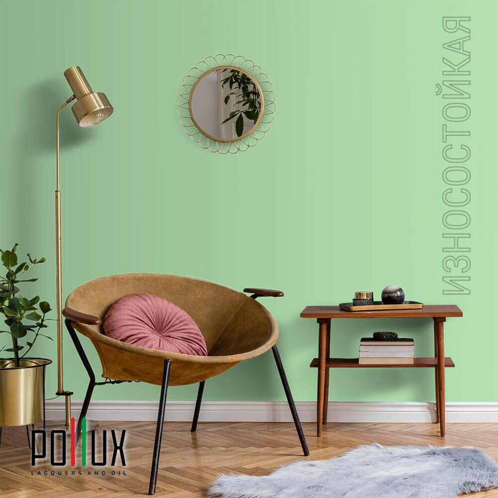 Краска моющаяся интерьерная для стен и потолков, Pollux INTERIOR без запаха, быстросохнущая, акриловая, матовое покрытие, цвет NCS S 4050-G20Y, 1л.