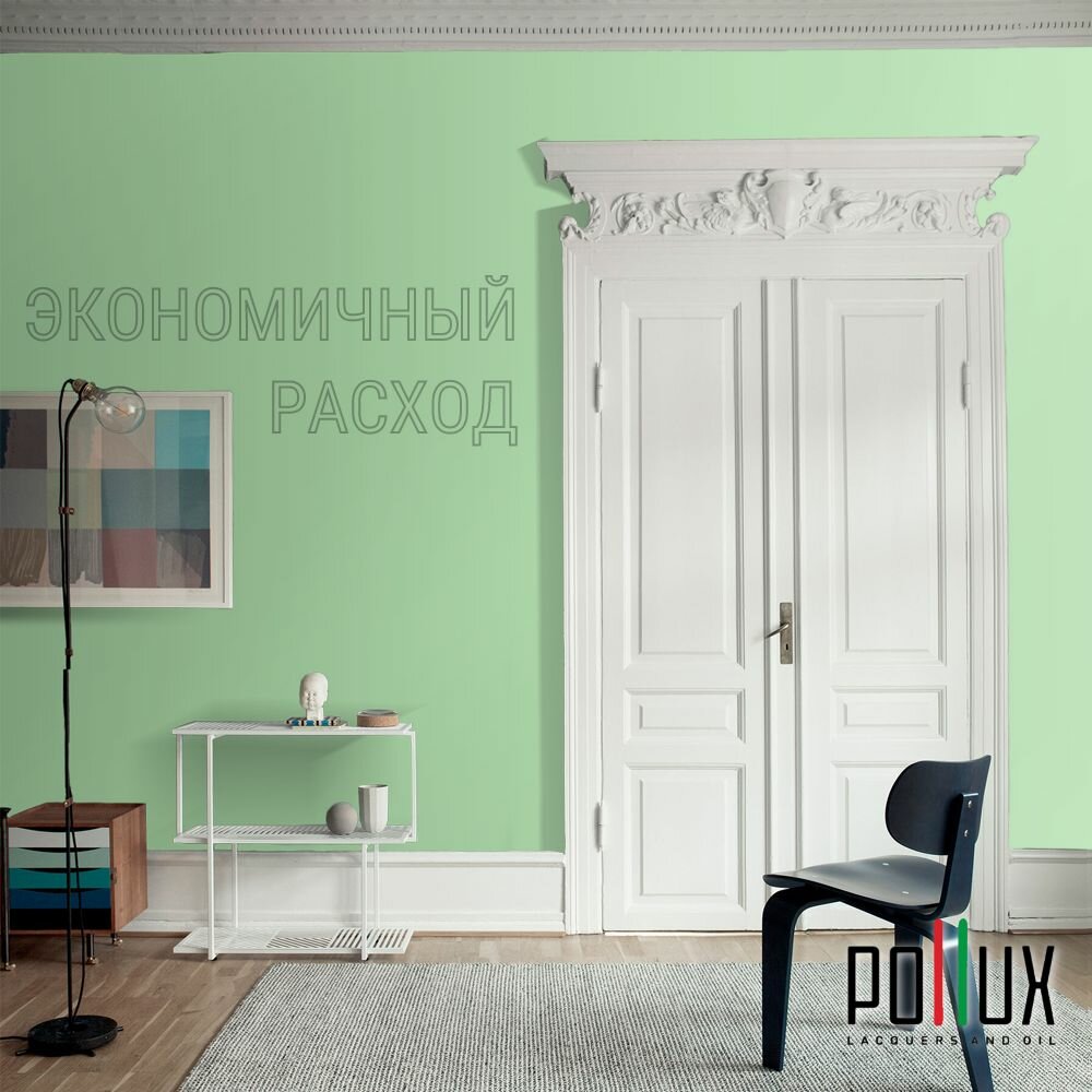 Краска моющаяся интерьерная для стен и потолков, Pollux INTERIOR без запаха, быстросохнущая, акриловая, матовое покрытие, цвет NCS S 0505-G20Y, 1л.