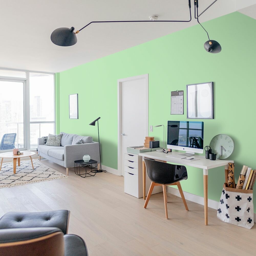 Краска моющаяся интерьерная для стен и потолков, Pollux INTERIOR без запаха, быстросохнущая, акриловая, матовое покрытие, цвет NCS S 2005-G20Y, 1л.