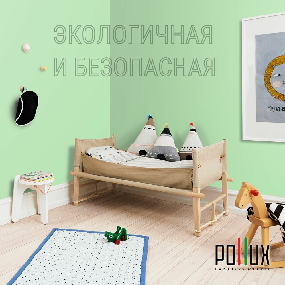 Краска моющаяся интерьерная для стен и потолков, Pollux INTERIOR без запаха, быстросохнущая, акриловая, матовое покрытие, цвет NCS S 5540-G20Y, 1л.