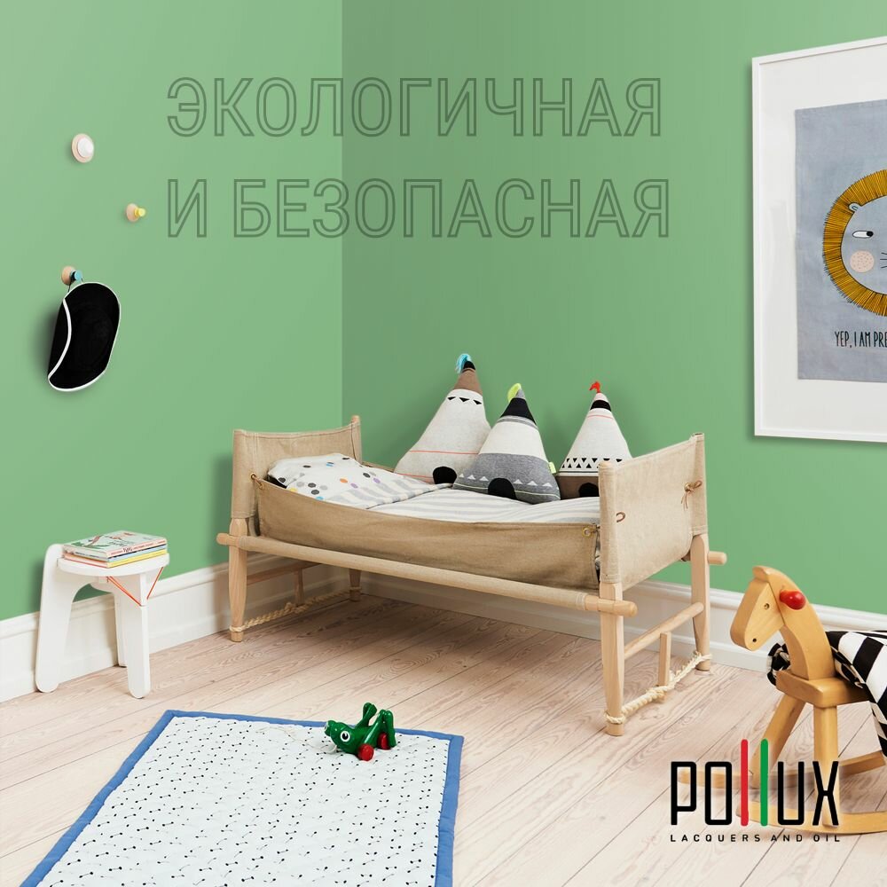 Краска моющаяся интерьерная для стен и потолков, Pollux INTERIOR без запаха, быстросохнущая, акриловая, матовое покрытие, цвет NCS S 5540-G20Y, 1л.