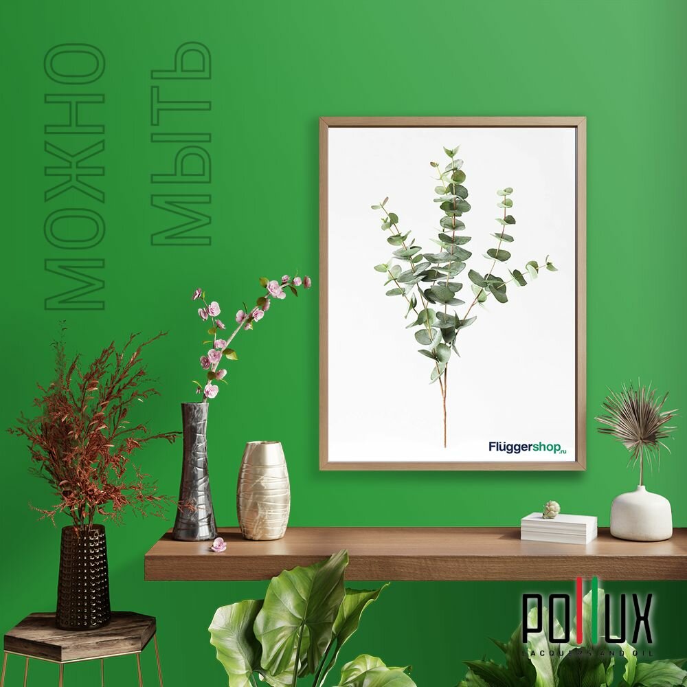 Краска моющаяся интерьерная для стен и потолков, Pollux INTERIOR без запаха, быстросохнущая, акриловая, матовое покрытие, цвет NCS S 8005-G20Y, 1л.