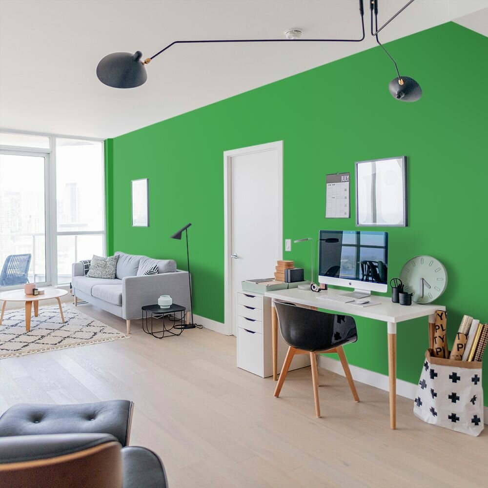 Краска моющаяся интерьерная для стен и потолков, Pollux INTERIOR без запаха, быстросохнущая, акриловая, матовое покрытие, цвет NCS S 1060-G20Y, 1л.