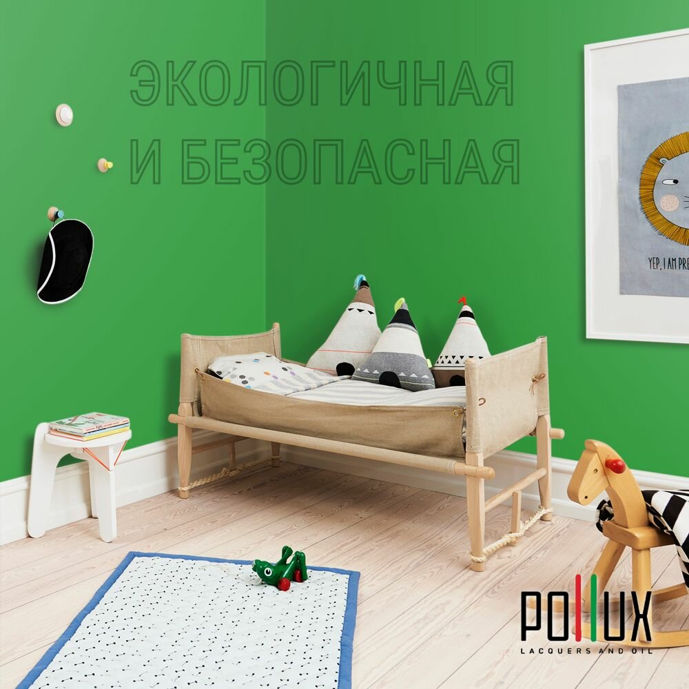 Краска моющаяся интерьерная для стен и потолков, Pollux INTERIOR без запаха, быстросохнущая, акриловая, матовое покрытие, цвет NCS S 5540-G20Y, 1л.
