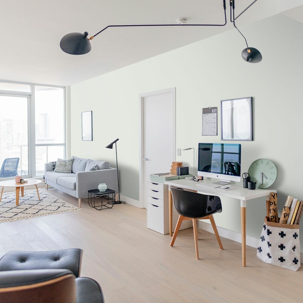 Краска моющаяся интерьерная для стен и потолков, Pollux INTERIOR без запаха, быстросохнущая, акриловая, матовое покрытие, цвет NCS S 0505-G20Y, 1л.