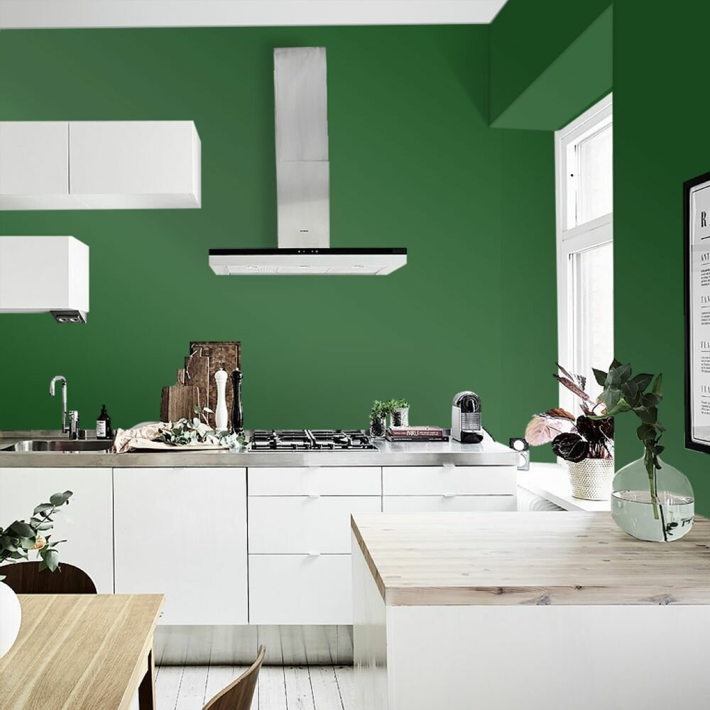 Краска моющаяся интерьерная для стен и потолков, Pollux INTERIOR без запаха, быстросохнущая, акриловая, матовое покрытие, цвет NCS S 4050-G20Y, 1л.