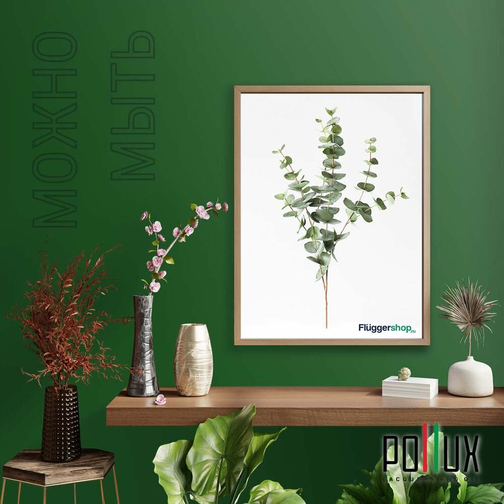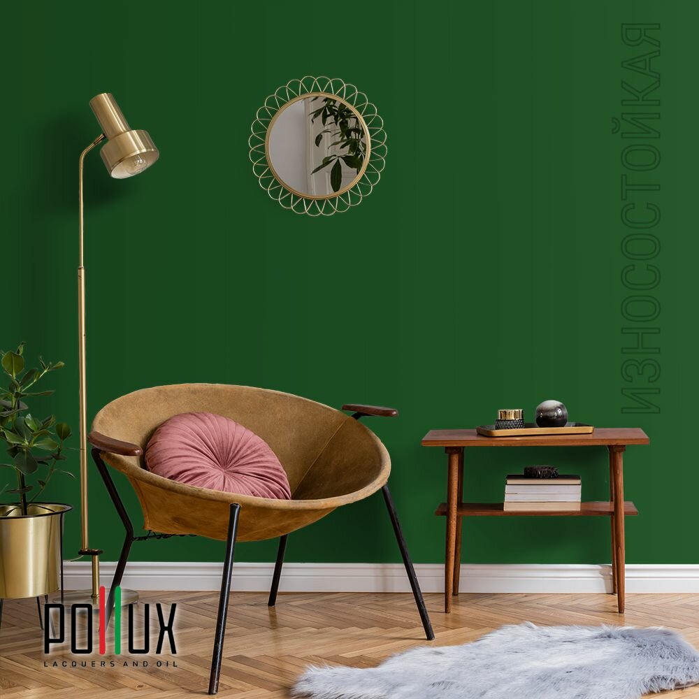 Краска моющаяся интерьерная для стен и потолков, Pollux INTERIOR без запаха, быстросохнущая, акриловая, матовое покрытие, цвет NCS S 6005-G20Y, 1л.