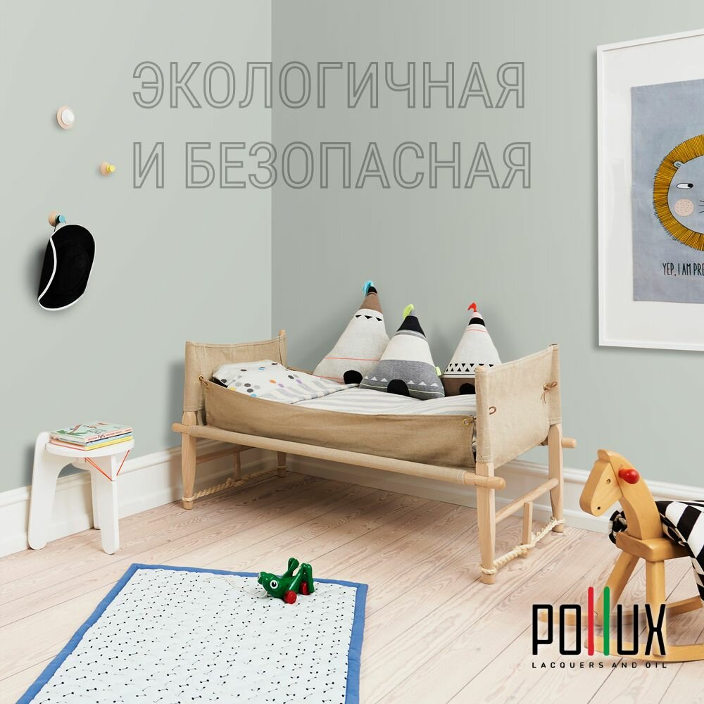 Краска моющаяся интерьерная для стен и потолков, Pollux INTERIOR без запаха, быстросохнущая, акриловая, матовое покрытие, цвет NCS S 5005-G20Y, 1л.