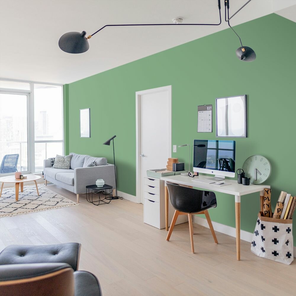 Краска моющаяся интерьерная для стен и потолков, Pollux INTERIOR без запаха, быстросохнущая, акриловая, матовое покрытие, цвет NCS S 6005-G20Y, 1л.