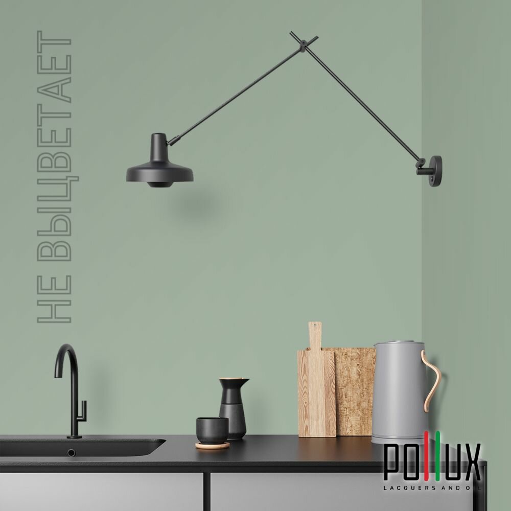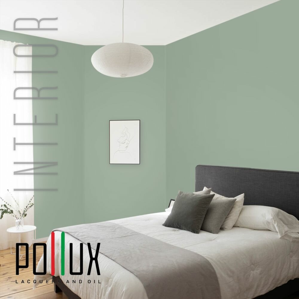 Краска моющаяся интерьерная для стен и потолков, Pollux INTERIOR без запаха, быстросохнущая, акриловая, матовое покрытие, цвет NCS S 4050-G20Y, 1л.