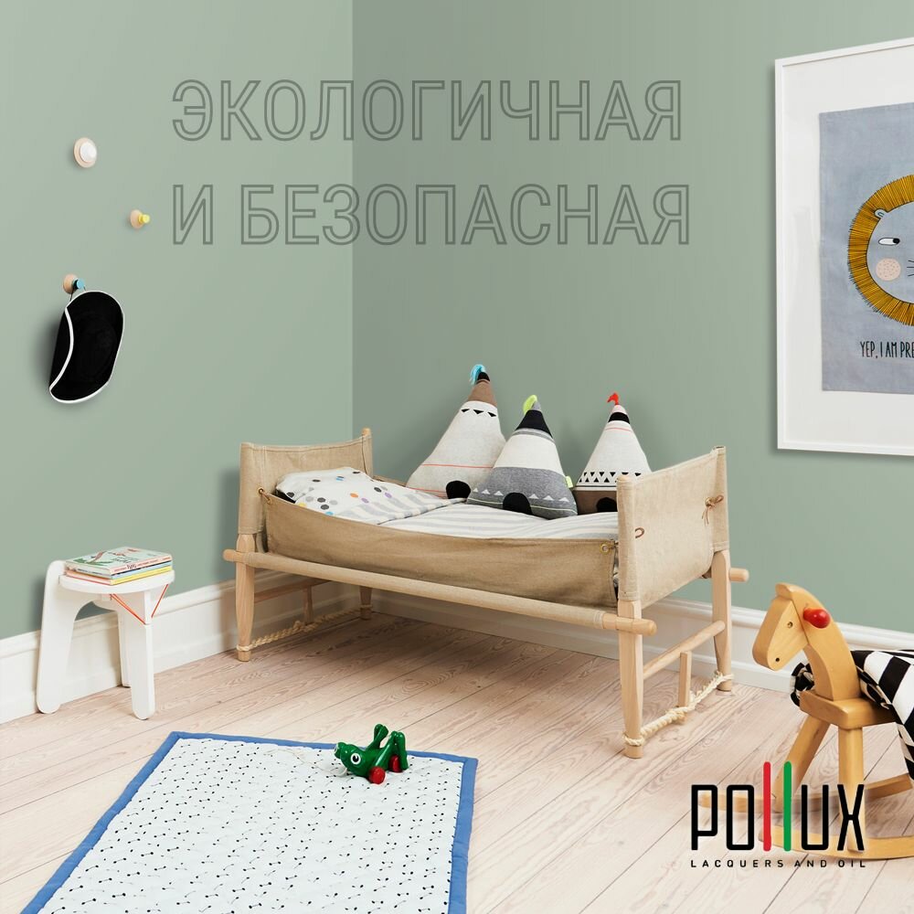 Краска моющаяся интерьерная для стен и потолков, Pollux INTERIOR без запаха, быстросохнущая, акриловая, матовое покрытие, цвет NCS S 5005-G20Y, 1л.