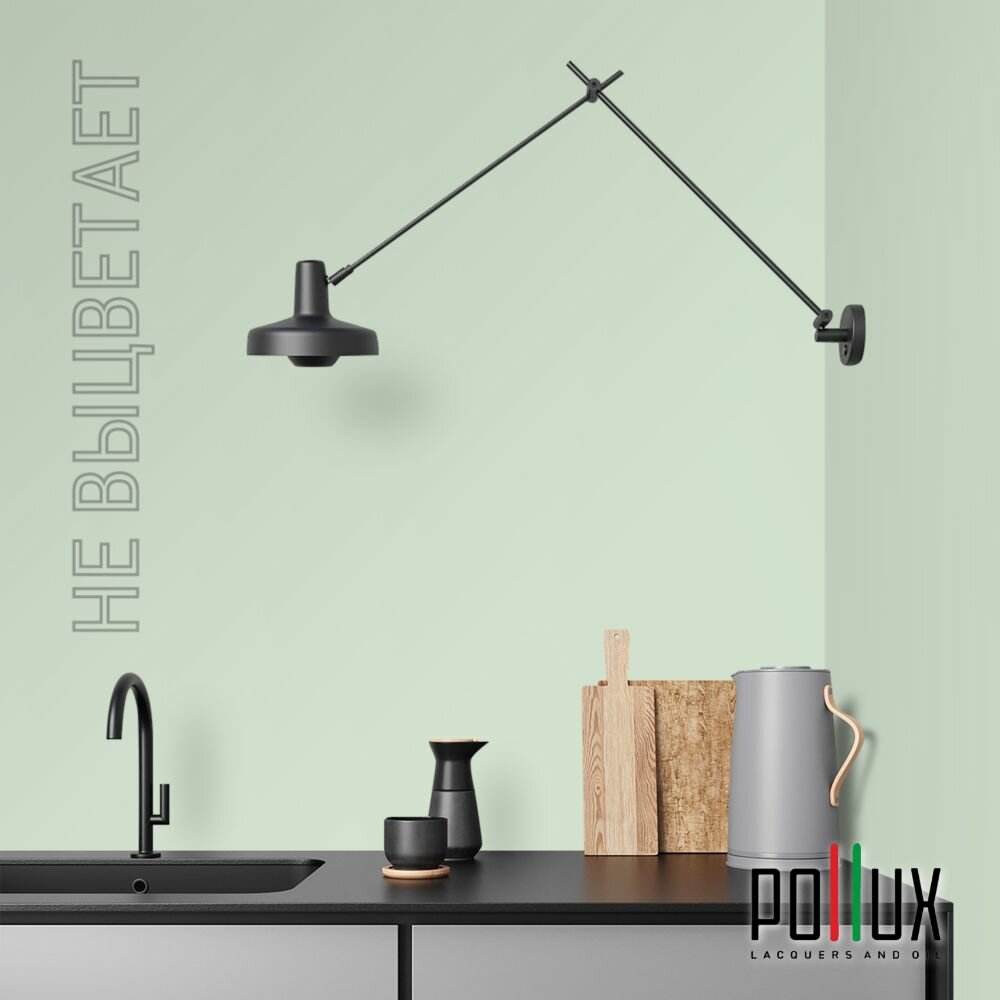 Краска моющаяся интерьерная для стен и потолков, Pollux INTERIOR без запаха, быстросохнущая, акриловая, матовое покрытие, цвет NCS S 1070-G20Y, 1л.