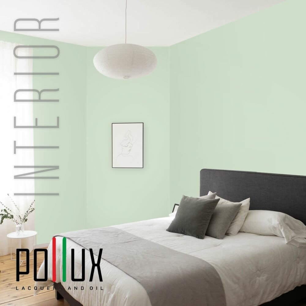 Краска моющаяся интерьерная для стен и потолков, Pollux INTERIOR без запаха, быстросохнущая, акриловая, матовое покрытие, цвет NCS S 3560-G20Y, 1л.