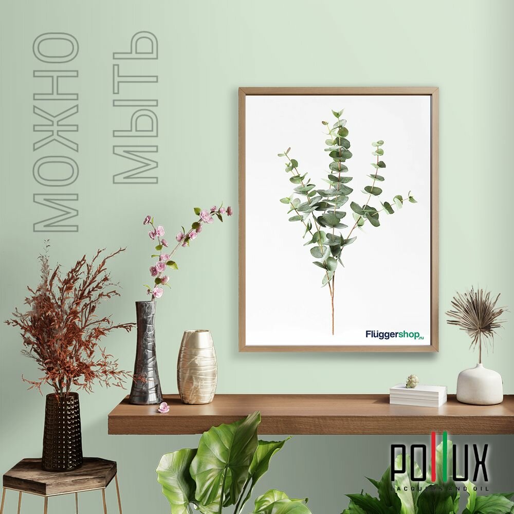Краска моющаяся интерьерная для стен и потолков, Pollux INTERIOR без запаха, быстросохнущая, акриловая, матовое покрытие, цвет NCS S 4005-G20Y, 1л.