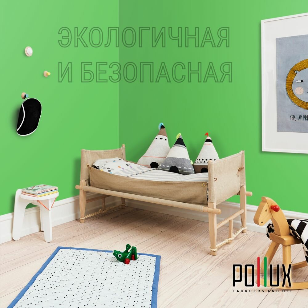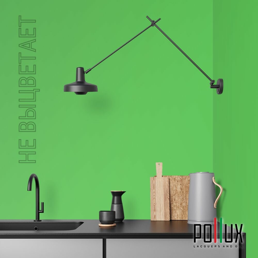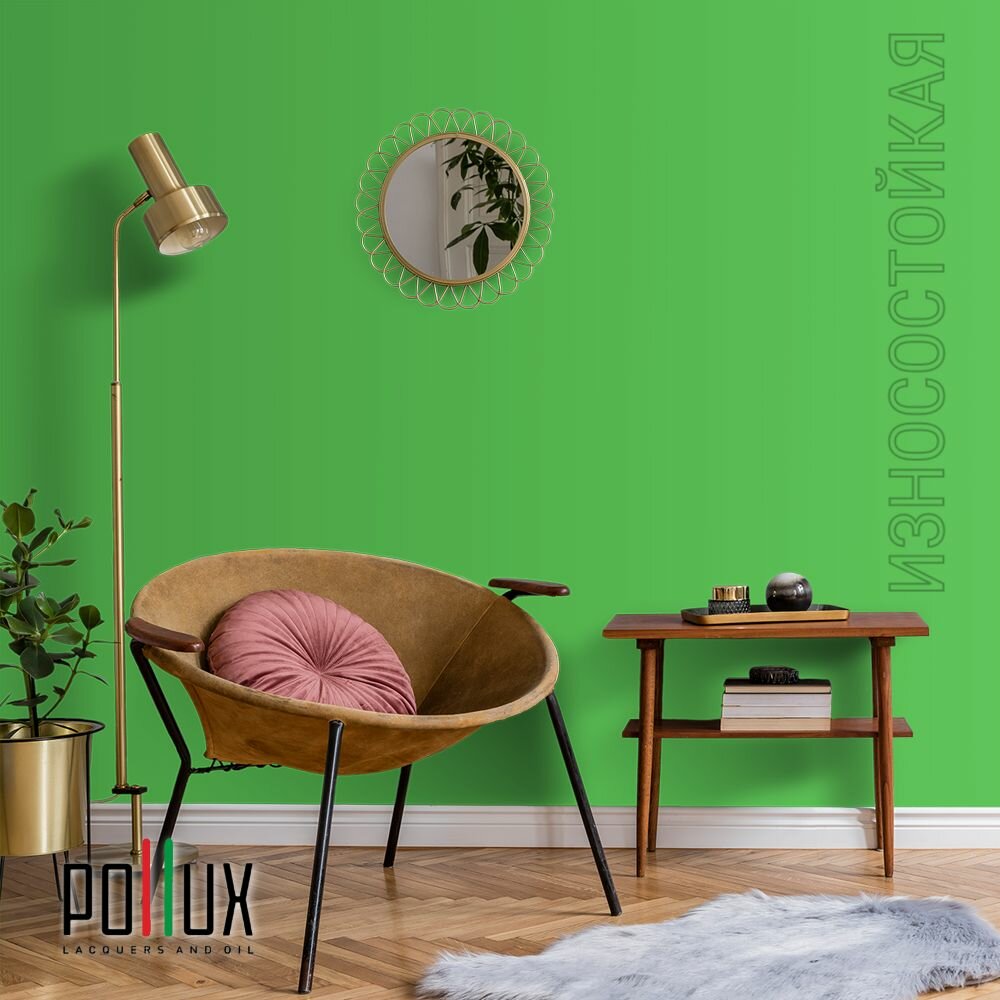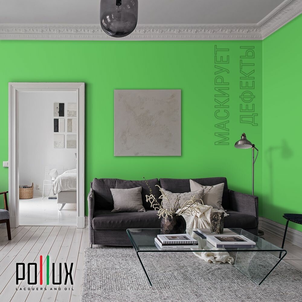 Краска моющаяся интерьерная для стен и потолков, Pollux INTERIOR без запаха, быстросохнущая, акриловая, матовое покрытие, цвет NCS S 1060-G20Y, 1л.