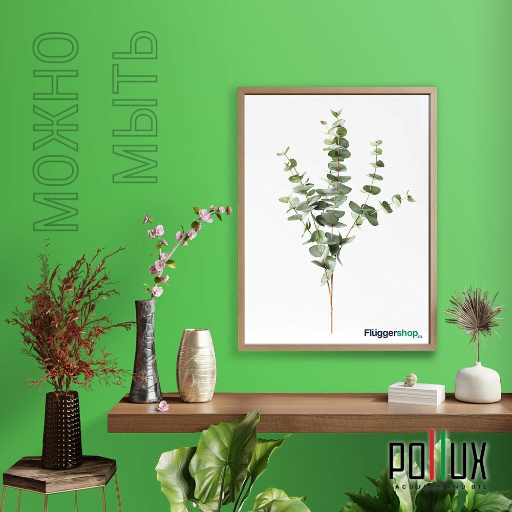 Краска моющаяся интерьерная для стен и потолков, Pollux INTERIOR без запаха, быстросохнущая, акриловая, матовое покрытие, цвет NCS S 8005-G20Y, 1л.