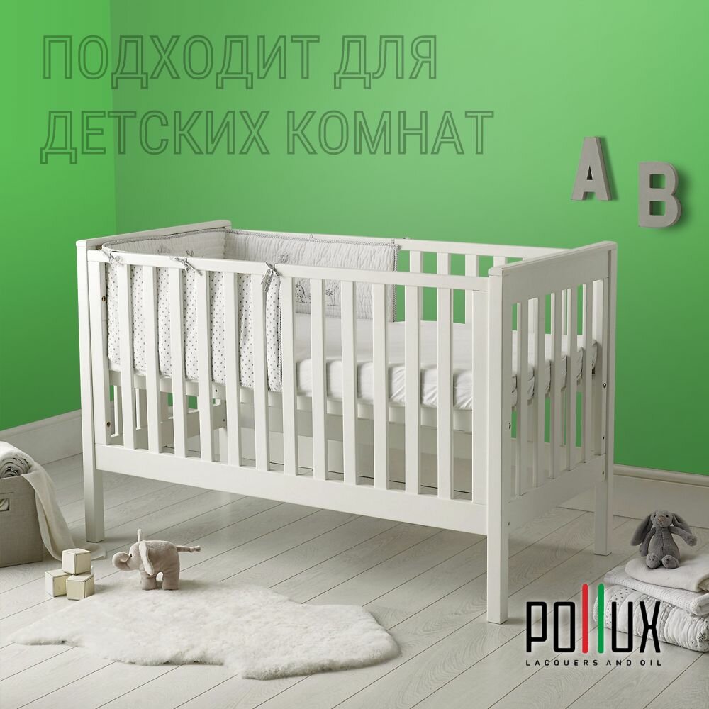 Краска моющаяся интерьерная для стен и потолков, Pollux INTERIOR без запаха, быстросохнущая, акриловая, матовое покрытие, цвет NCS S 0505-G20Y, 1л.