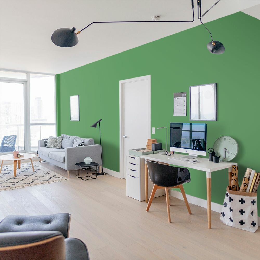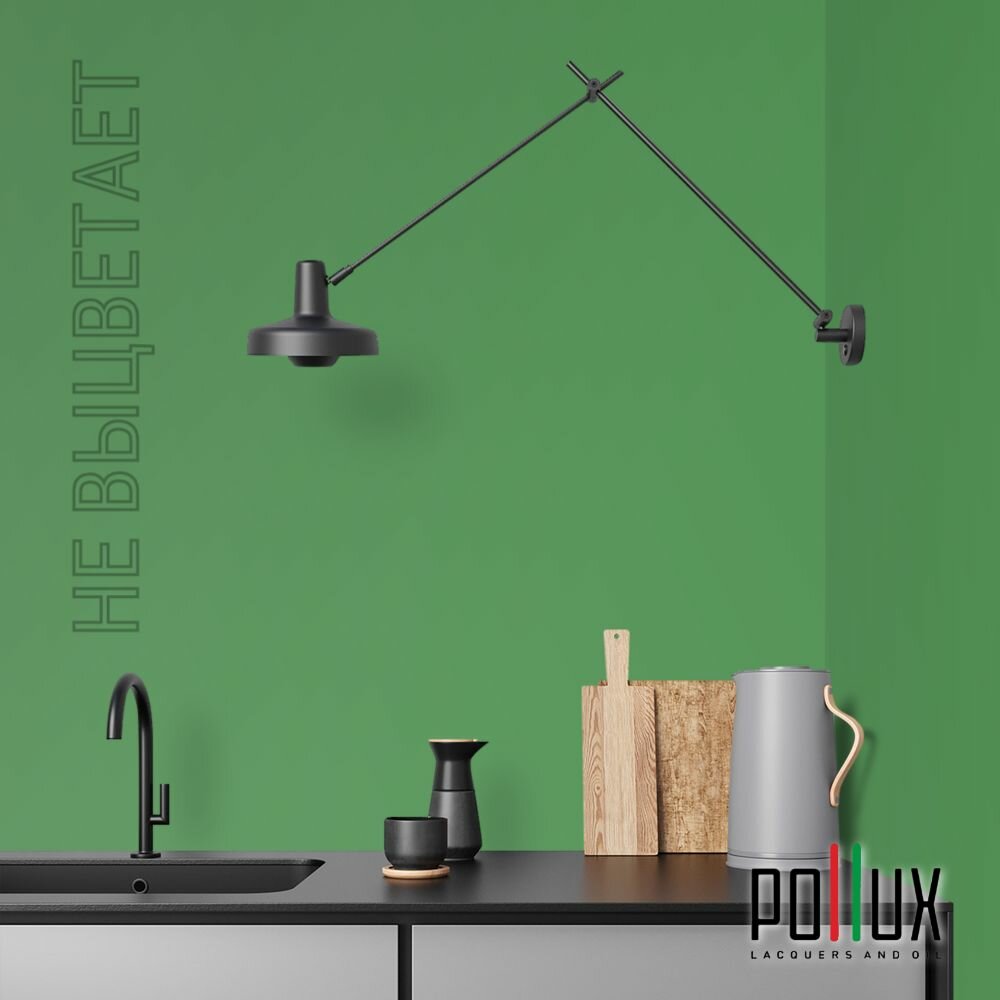 Краска моющаяся интерьерная для стен и потолков, Pollux INTERIOR без запаха, быстросохнущая, акриловая, матовое покрытие, цвет NCS S 3560-G20Y, 1л.