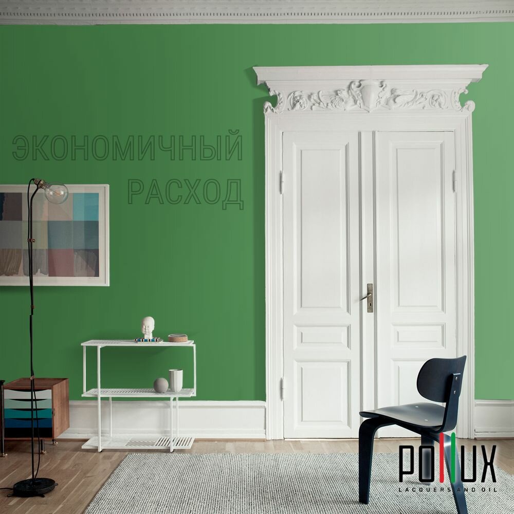 Краска моющаяся интерьерная для стен и потолков, Pollux INTERIOR без запаха, быстросохнущая, акриловая, матовое покрытие, цвет NCS S 1060-G20Y, 1л.