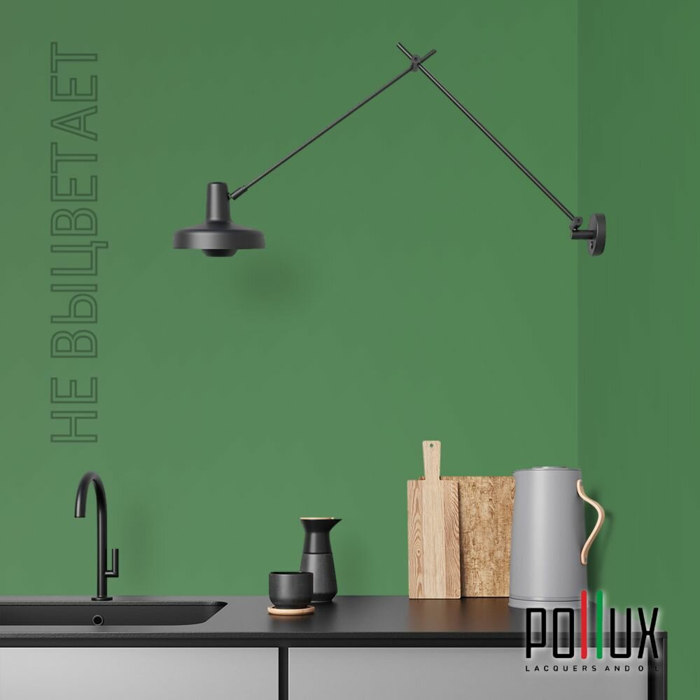Краска моющаяся интерьерная для стен и потолков, Pollux INTERIOR без запаха, быстросохнущая, акриловая, матовое покрытие, цвет NCS S 3560-G20Y, 1л.