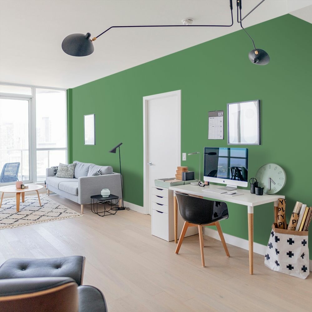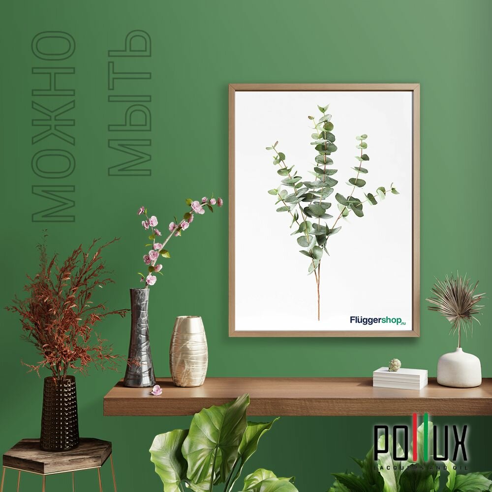 Краска моющаяся интерьерная для стен и потолков, Pollux INTERIOR без запаха, быстросохнущая, акриловая, матовое покрытие, цвет NCS S 6005-G20Y, 1л.