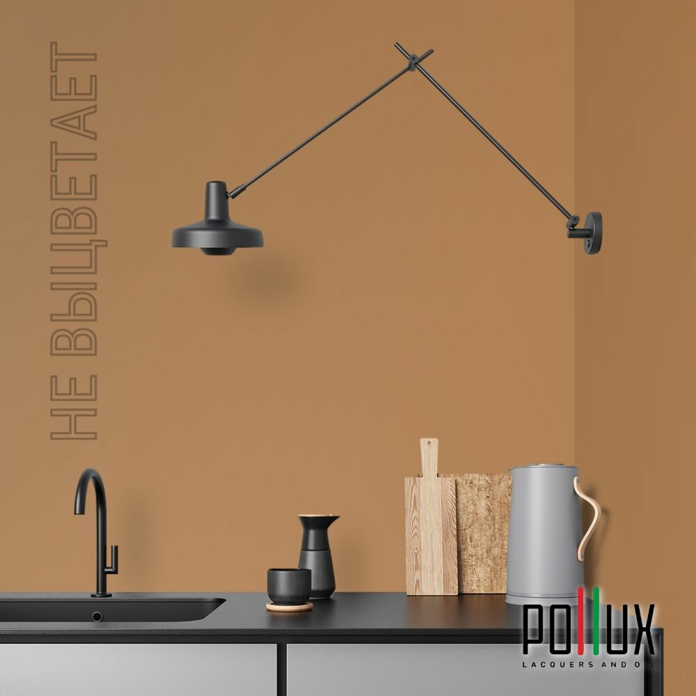 Краска моющаяся интерьерная для стен и потолков, Pollux INTERIOR без запаха, быстросохнущая, акриловая, матовое покрытие, цвет NCS S 0585-Y30R, 1л.