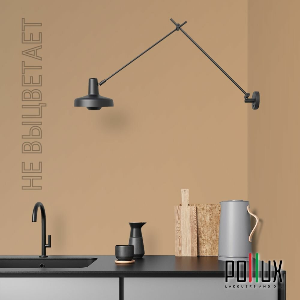 Краска моющаяся интерьерная для стен и потолков, Pollux INTERIOR без запаха, быстросохнущая, акриловая, матовое покрытие, цвет NCS S 4050-Y30R, 1л.