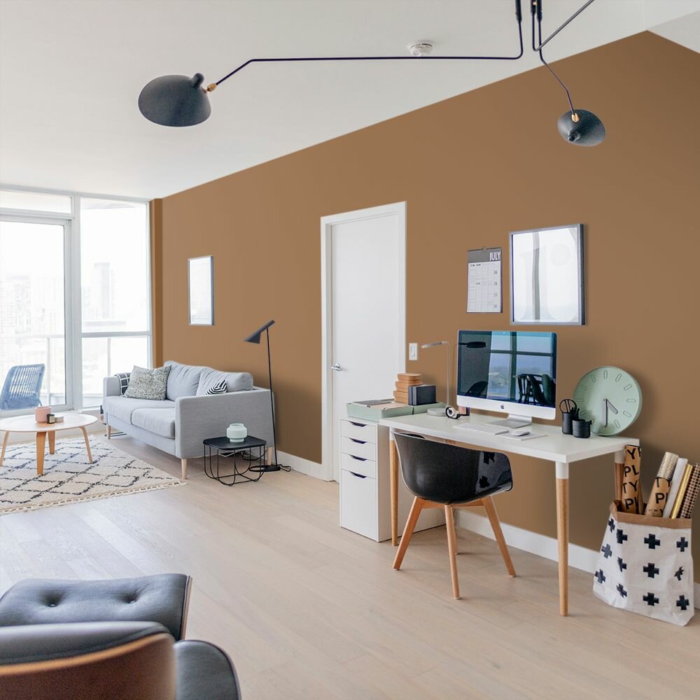 Краска моющаяся интерьерная для стен и потолков, Pollux INTERIOR без запаха, быстросохнущая, акриловая, матовое покрытие, цвет NCS S 8010-Y30R, 1л.