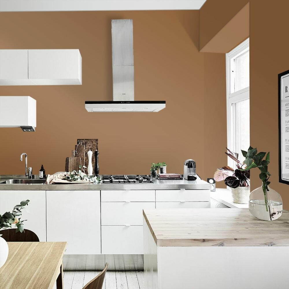 Краска моющаяся интерьерная для стен и потолков, Pollux INTERIOR без запаха, быстросохнущая, акриловая, матовое покрытие, цвет NCS S 0585-Y30R, 1л.