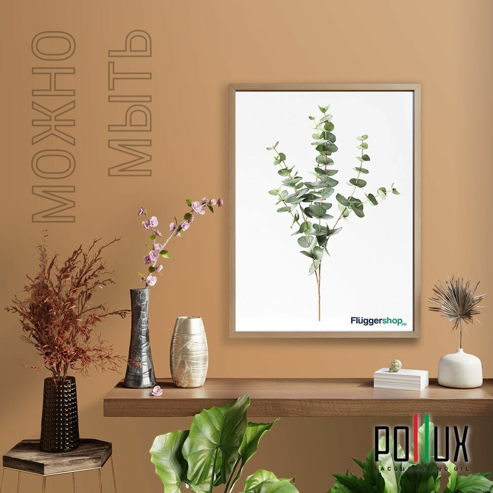 Краска моющаяся интерьерная для стен и потолков, Pollux INTERIOR без запаха, быстросохнущая, акриловая, матовое покрытие, цвет NCS S 8010-Y30R, 1л.