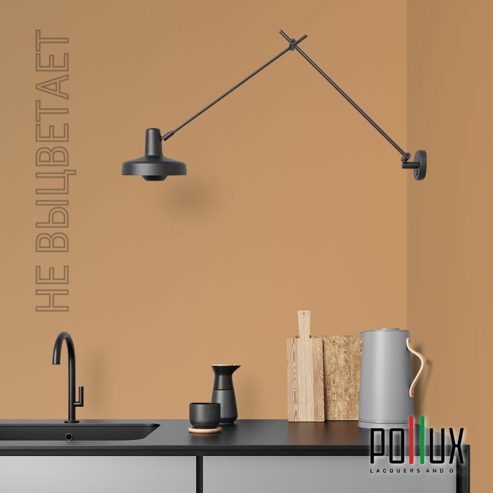 Краска моющаяся интерьерная для стен и потолков, Pollux INTERIOR без запаха, быстросохнущая, акриловая, матовое покрытие, цвет NCS S 4050-Y30R, 1л.