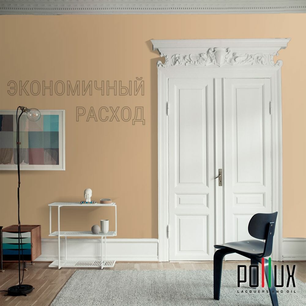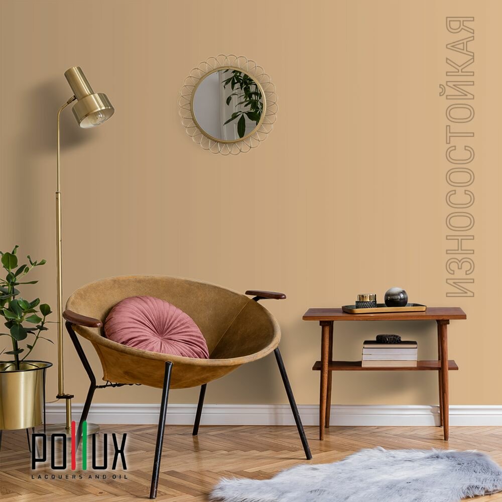 Краска моющаяся интерьерная для стен и потолков, Pollux INTERIOR без запаха, быстросохнущая, акриловая, матовое покрытие, цвет NCS S 0585-Y30R, 1л.