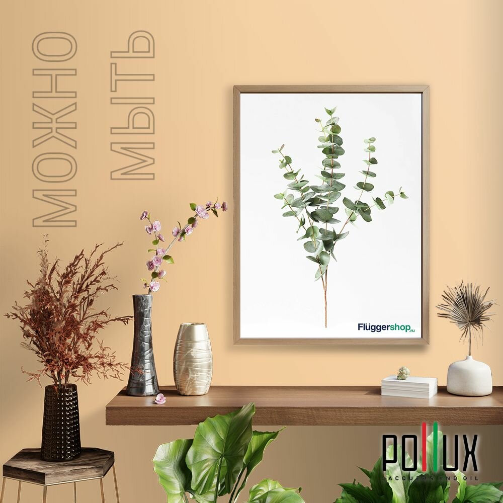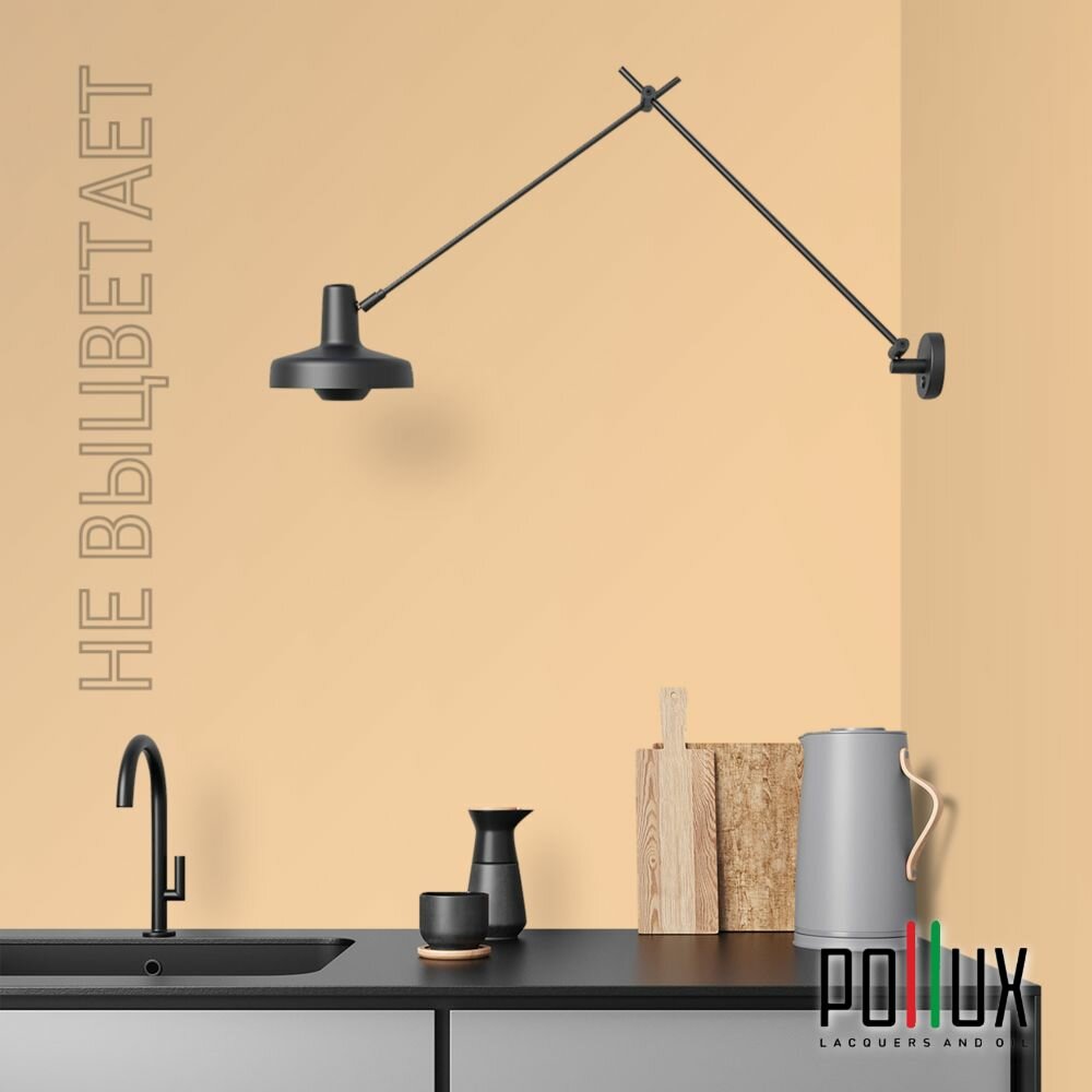 Краска моющаяся интерьерная для стен и потолков, Pollux INTERIOR без запаха, быстросохнущая, акриловая, матовое покрытие, цвет NCS S 0585-Y30R, 1л.